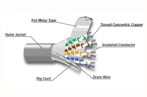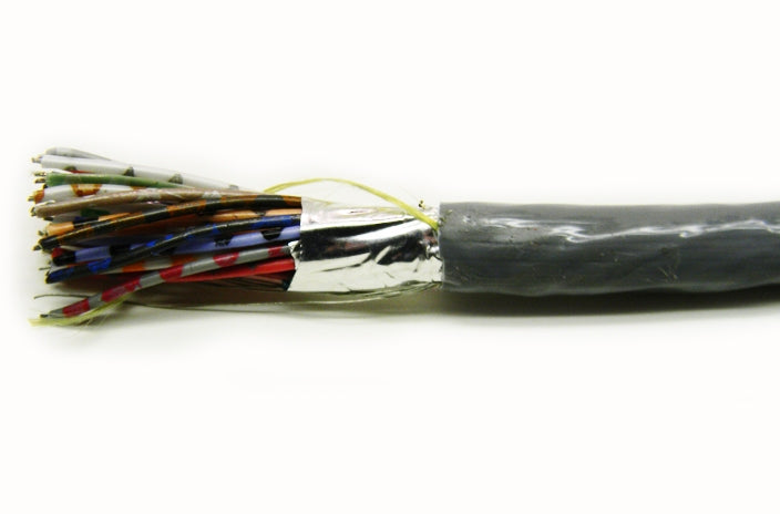 24 gauge, 12.5 pair, stranded tinned copper conductor overall foil shielded low capacitance communications cable. Comes with a drain wire, grey PVC jacket, and is CSA FT-6 (plenum rated), UL Listed. 1000 feet per Spool.
