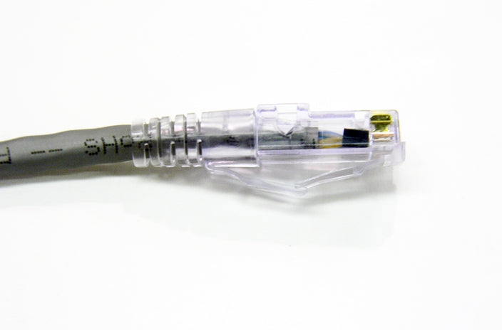 Datcom Assured Canadian Manufactured 8P8C (RJ45) 568A/ISDN paired Category 6 plus stranded grey patch cable x 25 feet. With clear low profile easy squeeze strain relief boots. Plus 4dB headroom exceeds Category 6 standards.