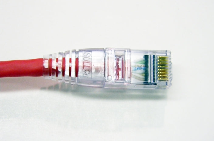 Datcom Assured Canadian Manufactured 8P8C (RJ45) 568A/ISDN paired Category 6 plus stranded red patch cable x 25 feet. With clear low profile easy squeeze strain relief boots. Plus 4dB headroom exceeds Category 6 standards.