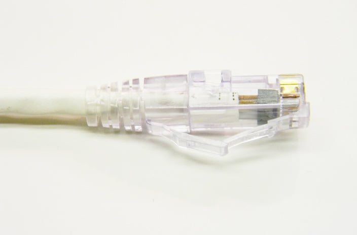 Datcom Assured Canadian Manufactured 8P8C (RJ45) 568A/ISDN paired Category 6 plus stranded white patch cable x 10 feet. With clear low profile easy squeeze strain relief boots. Plus 4dB headroom exceeds Category 6 standards.