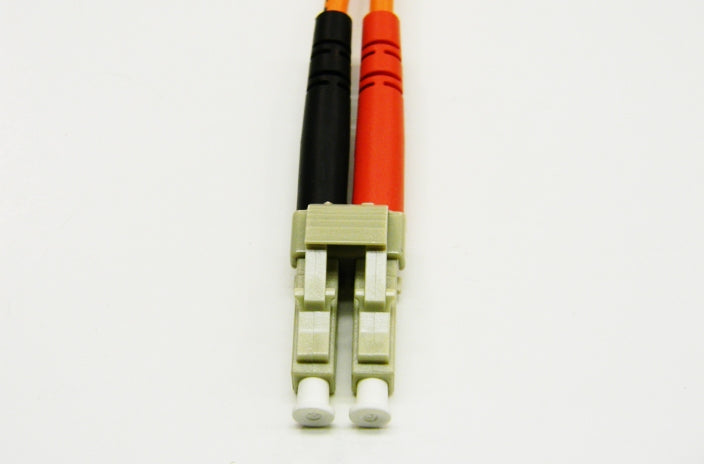 Datcom Assured Canadian Manufactured LC to LC 62.5/125um OM1 Multimode duplex OFNR riser rated orange coloured 3mm jacketed fiber patch cord by 12ft. Features a duplex shrouded connector and printed test results. Maximum -.30 dB insertion loss, exceeds belcore specifications.
