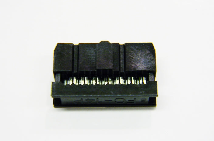 Datcom Realm 14 pin female ribbon header connector. Comes with .10 inch (2.54 millimeter) spacing, 2 rows of 7 and a strain relief.