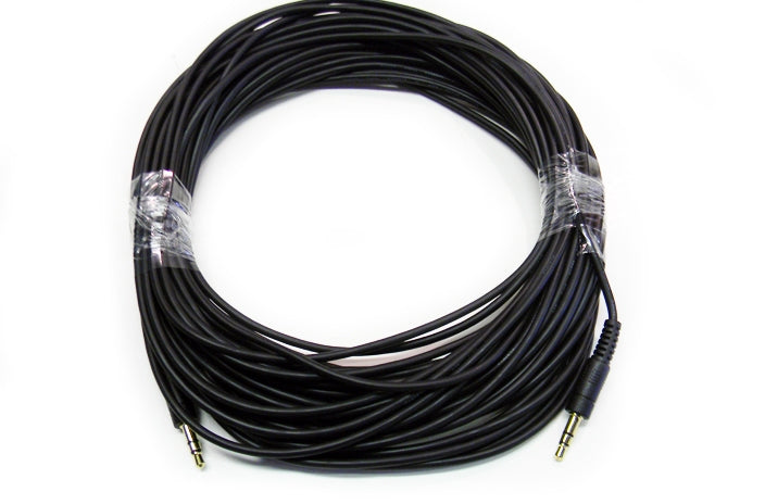 Datcom Realm 3.5mm male to male stereo cable x 50 feet (15.24 meters). Comes with 27 gauge oxygen free copper conductor, a drain wire & an aluminum foil shield to reject noise.