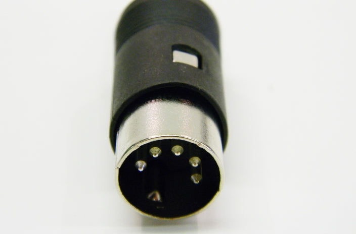 Datcom Realm 5 pin din male 180 degree positioning solder type connector. Comes with strain relief.