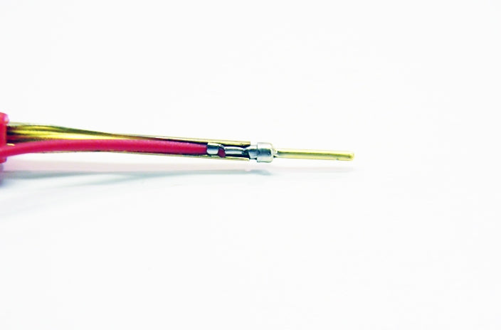 Datcom Realm D-Sub pin insertion and extraction tool. Use the red end to insert a pin and the white end to quickly and easily remove a pin.