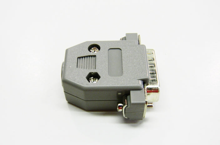 Datcom Realm DB15 grey plastic cover. Comes with a straight cable exit, male retaining screw set and strain relief screws.