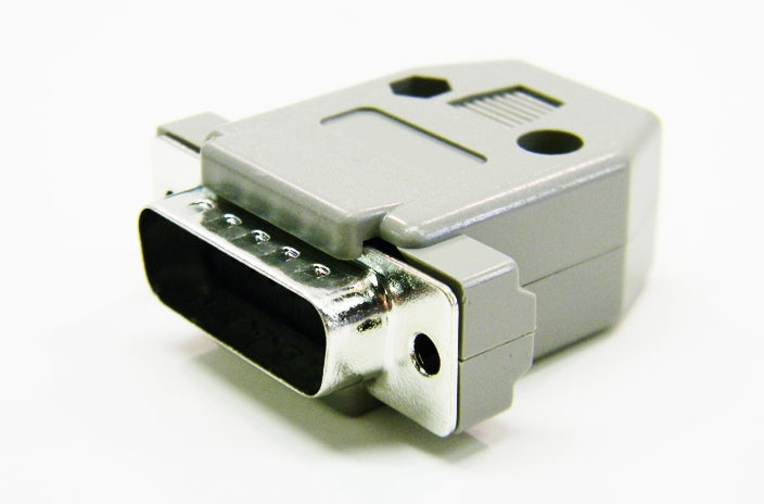 Datcom Realm DB15 male tinned crimp connector. The detents on the connector provide a firm fit. Pins and covers sold separately.