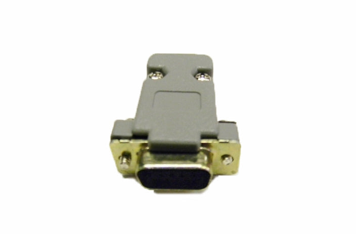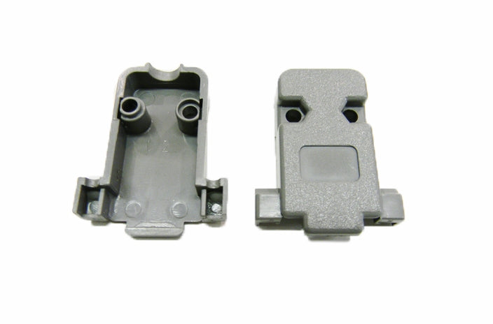 Datcom Realm DB9 grey plastic cover. Comes with a straight cable exit, male retaining screw set and strain relief screws.