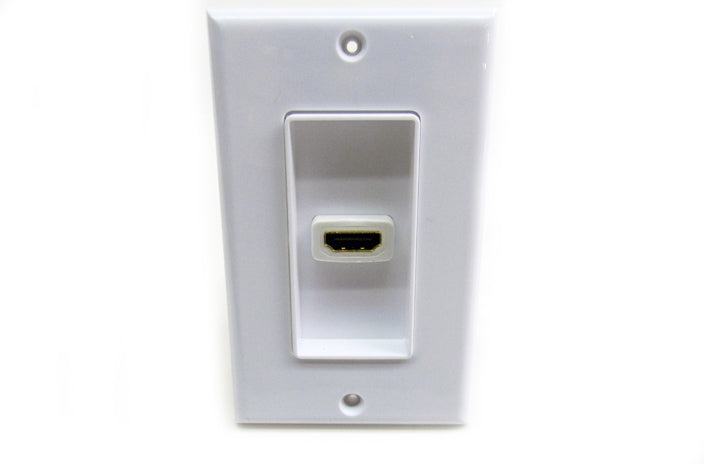 Datcom Realm 1 port single gang HDMI white decora style plate. Comes with a 3 inch female to female adapter cable and cover plate. Product replaced by 926-9010-6