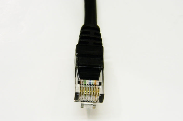 Datcom Realm 8P8C RJ45 paired Category C5e stranded black patch cable x 25 feet. Comes with easy squeeze moulded high density low profile snag-proof boots.