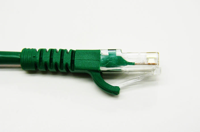 Datcom Realm 8P8C RJ45 paired Category C5e stranded green patch cable x 20 feet. Comes with easy squeeze moulded high density low profile snag-proof boots.