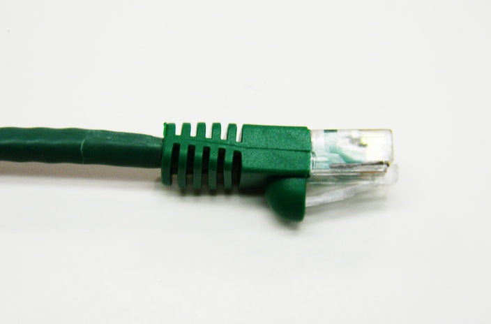 Datcom Realm 8P8C RJ45 paired Category 6 stranded green patch cable x 6 feet. Comes with easy squeeze moulded high density low profile snag-proof boots.