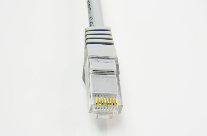 Datcom Realm 8P8C RJ45 paired Category 6 stranded grey patch cable x 25 feet. Comes with easy squeeze moulded high density low profile snag-proof boots.