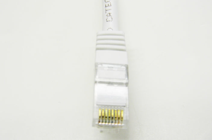 Datcom Realm 8P8C RJ45 paired Category 6 stranded white patch cable x 6 feet. Comes with easy squeeze moulded high density low profile snag-proof boots.