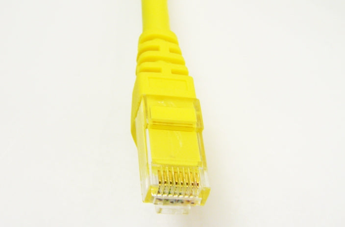 Datcom Realm 8P8C RJ45 paired Category 6 stranded yellow patch cable x 50 feet. Comes with easy squeeze moulded high density low profile snag-proof boots.