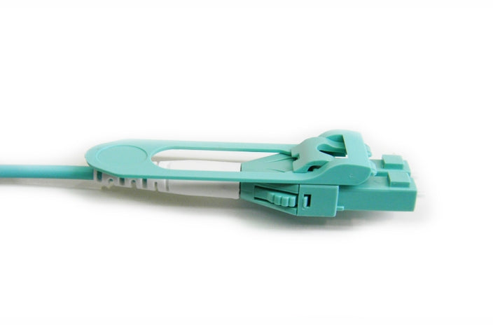 Datcom Realm LC to LC 50/125um OM3 multimode single simplex aqua coloured 2.4mm jacketed fiber patch cord by 5 meter. Features a quick flip, reversible polarity, Uniboot LC fiber optic connector and printed test results.