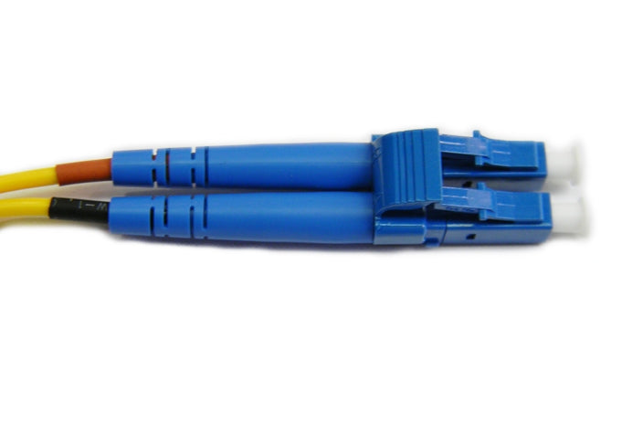Datcom Realm LC to LC singlemode duplex zip fiber patch cord by 3.28 feet (1 meter). Comes with a 2 millimeter OFNR riser rated yellow jacket and printed test results.