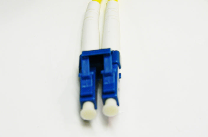 Datcom Realm LC to LC singlemode duplex zip fiber patch cord by 3 feet (0.91 meters). Comes with a 3 millimeter OFNR riser rated yellow jacket and printed test results.