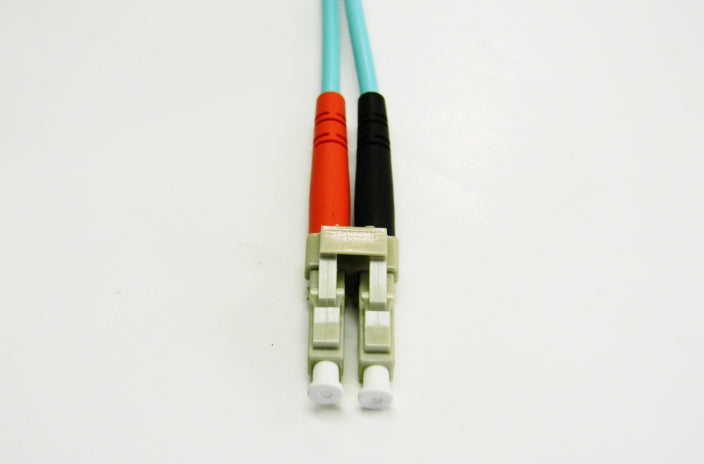 Datcom Realm LC to SC multimode 50/125 OM3 micron duplex zip fiber patch cord by 5 feet (1.52 meters). Comes with a 2 millimeter OFNR riser rated aqua jacket and printed test results.