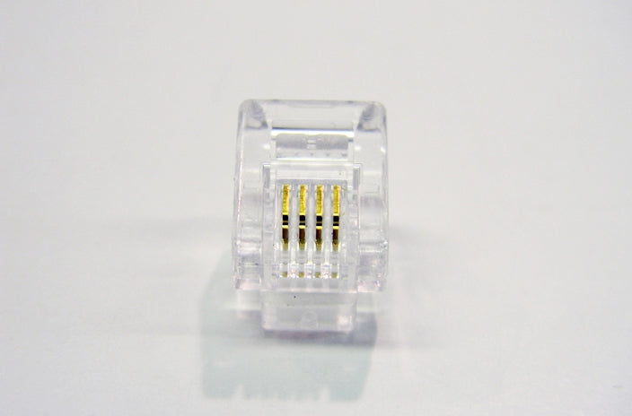 Datcom Realm RJ11 (6P4C) modular plug for stranded wire, with 50 micron inch gold over nickel plating.