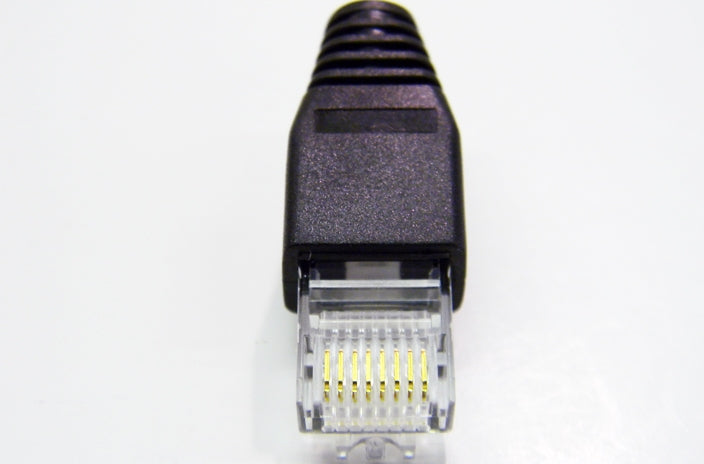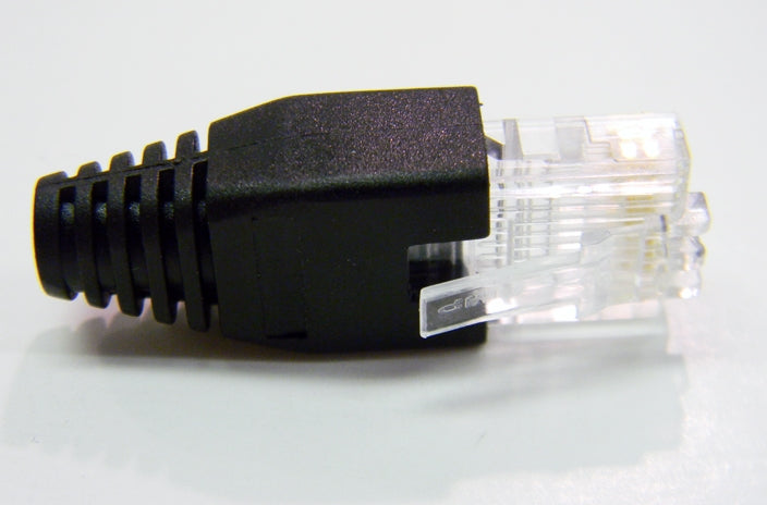Datcom Realm RJ45 8P8C black protective boot. Can be used on a 6 millimeter cable diameter or less.