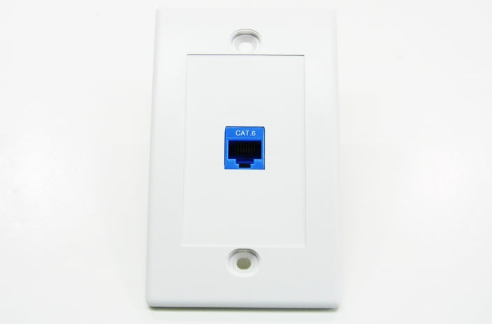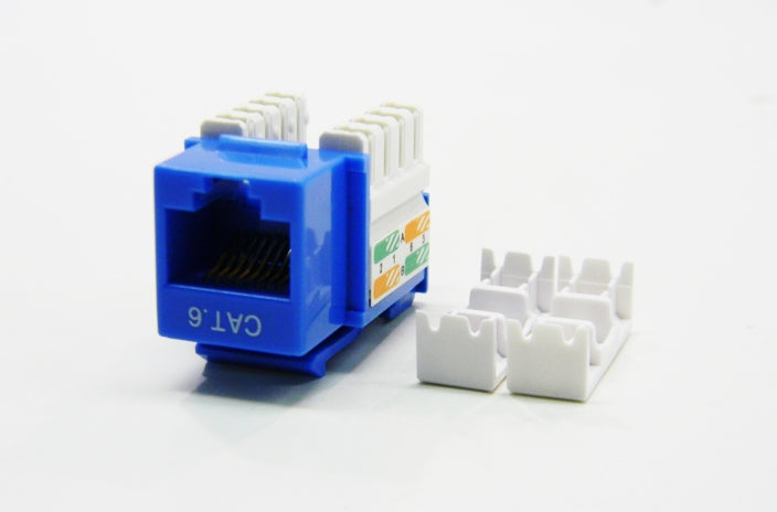 Datcom Realm RJ45 ethernet 568A/B universal cat6 blue keystone jack can be terminated with a 110 IDC punch down tool. Datcom Realm cat6 data wall jack supports 10/100/1000 Base-T applications.