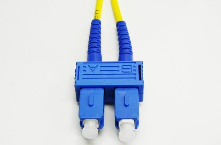 Datcom Realm ST to SC singlemode duplex zip fiber patch cord by 10 feet (3.05 meters). Comes with a 3 millimeter OFNR riser rated yellow jacket and printed test results.