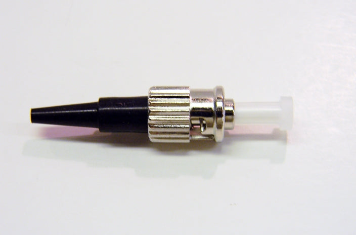 Datcom Realm ST singlemode simplex fiber connector for 900 micron strand. Comes with a metal body, 126 micron ferrule and a black boot.