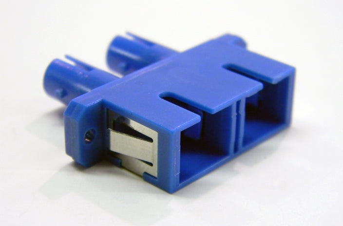 Datcom Realm ST to SC multi and singlemode duplex female to female hybrid adapter. Comes with high precision zirconia sleeve.