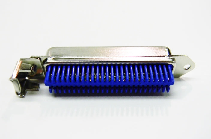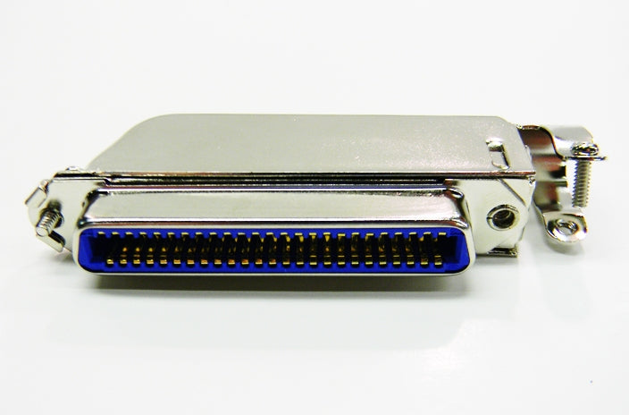 Datcom Realm telco 50 female IDC connector with 90 degree metal cover, strain relief and mounting screw. Ideal for 25 pair cable, 24 or 26 gauge.