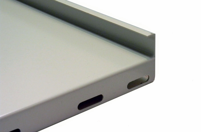 DL's FXSHZ2320 is a 23 inch wide x 20 inches deep fixed side mount cabinet shelf, 16 gauge steel constructed with a rugged beige textured powder coat.