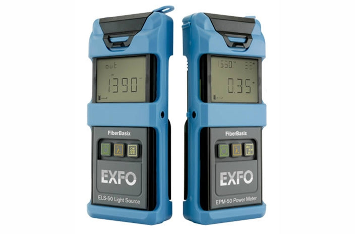 EXFO FiberBasic 50 Handheld singlemode test kit comprises of the ELS 1310/1550 nm laser light source and the EPM InGaAs power meter. Both come with FC connectors all in a protective hard case.