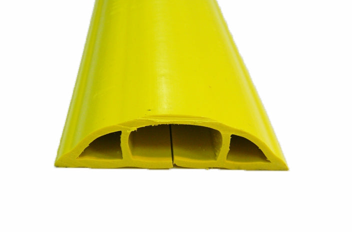 Framtrak’s FEFG2Y6 yellow floortrak 3 inches wide x .75 inch high is a flexible nonmetallic cover for cables that run over the floor.The center hole dimension is .5 inch high x 1.125 inch wide, holds up to 10 Cat5e cables and comes in 6 foot lengths.The FEFG2Y6 floortrak is a cover for cables that run over the floor.When portable cords and cables cannot be concealed or routed away from traffic patterns, portable floortrak protects, organizes and reduces trip hazards.