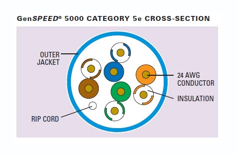 General's 5131361E GenSpeed 5000 Cat5e CMP plenum 4 pair UTP cable with a white jacket supports 1GbE performance.The 5131361E category 5e 24 gauge Ethernet cable is ETL verified to TIA 568-C.2, UL & cUL approved & tested to 200 MHz with verified stability. Pull Box