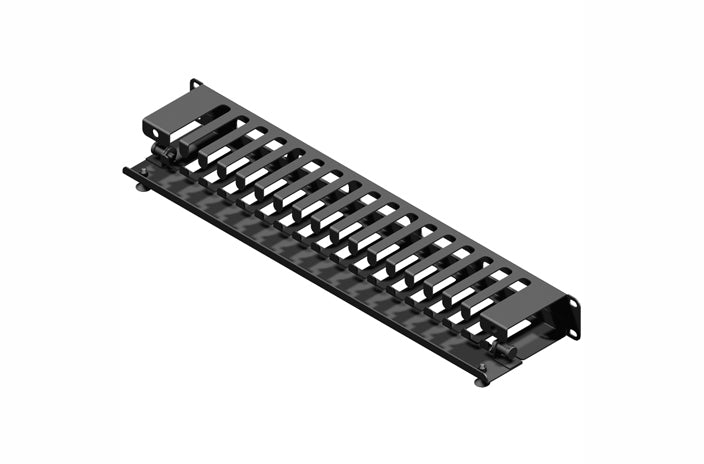Hammond PCMDS19003BK1 2U rackmount horizontal cable manager is a 19 inch wide x 3.50 inches high (2U) x 3 inches deep steel finger cable management panel comes with a snap open metal door.The PCMDS19001BK1 is constructed from 16 gauge steel and finished in textured black powder paint.