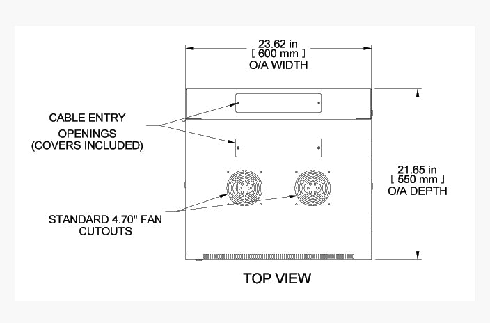 - Pre punched top for optional fans (plates included for blocking cutouts of one or both fan openings if not required)