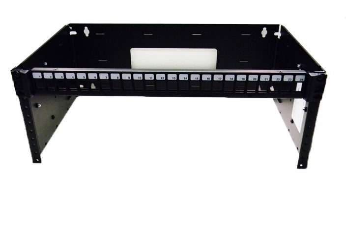 Hammond's APB19010BK1is a 6U adjustable wall mount bracket 19.25 inches wide x 10.48 inches high x inches to 18 inches deep. The APB19010BK1 comes with 10/32 tapped rails, Velcro knockouts, rear openings 8 inches x 2.5 inches, rugged black textured powder coat finish and 25 black Phillips screws and template.