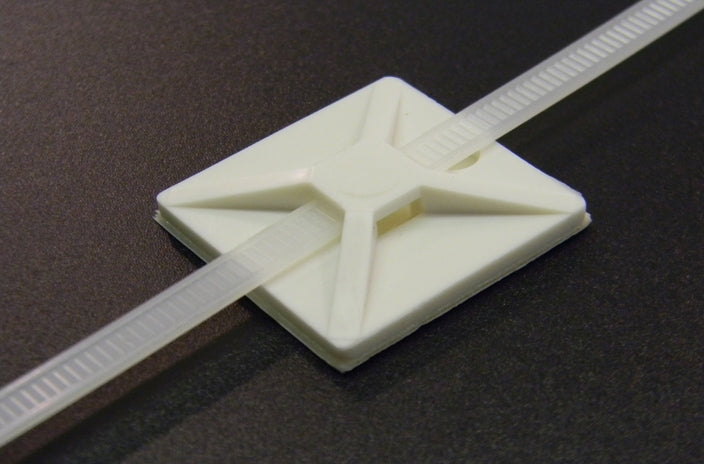 HellermannTyton 4 way adhesive cable tie mounting base 1.12 inches (28 millimeters) x 1.12(28 millimeters). Used in conjunction with cable ties to stabilize and secure wiring bundles.