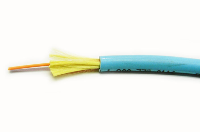 Hitachi 60471-2 SingleUnit 50/125 micron multimode OM3, 2 fiber round distribution, UL TYPE OFNP/cUL OFN FT6 plenum rated aqua jacket. 4.8mm O.D. Hitachi's 60471-2 complies with TIA/EIA-568-C.3 & provides 1000 meter (@850nm) & 550 meter (@1300nm) link for gigabit ethernet. Spool.