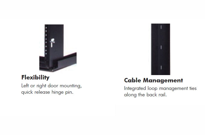 • Cable tie slots along both sides and inside top and bottom.