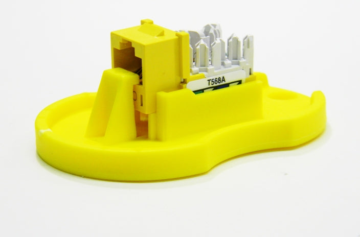 Hubbell HXJ5EY Xcelerator RJ45 ethernet 568A/B universal modular cat5e yellow keystone jack can be terminated with a 110 IDC punch down tool or toolless termination. The HXJ5EY Hubbell RJ45 jack is the first modular jack to undergo extreme DTE Power testing to 4x the standard handling continuous DTE Power, exceeding the IEEE 802.3af standard without failure or any substantial temperature increase. Hubbell’s cat5e data wall jack supports 10/100/1000 Base-T applications. Learn More about benefits of Hubbell Jack.