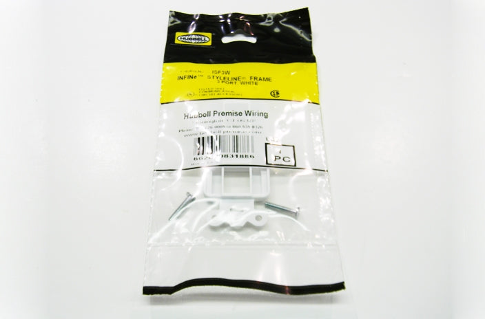 Hubbell ISF3W iStation rear loading 3 port keystone wall mount decorator outlet frame white. The ISF3W accepts Xcelerator Ethernet jacks and audio/video/fiber keystone connectors. Hubbell’s Decorator outlet frames provide instant communication mounting capabilities within a rectangular (GFCI) or duplex electrical design. These frames lend flexibility and increased capacity to the work area and can accommodate a broad range of retrofit applications. Learn more about the benefits of Hubbell Face plates.