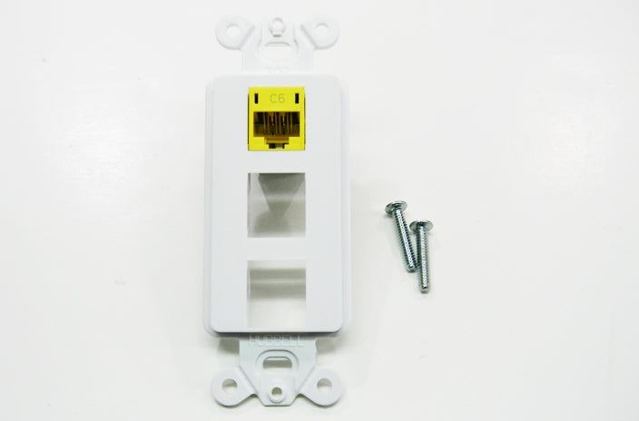 - Provides a rear loading, snap in, flush mounting of Hubbell jacks and AV keystone connectors.