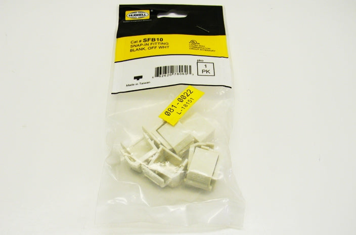 Hubbell SFB10 office white keystone faceplate blank snap in iStation connector fittings are used to fill unoccupied ports on iStation plates, surface mount boxes and unloaded patch panels. 10 piece per package.
