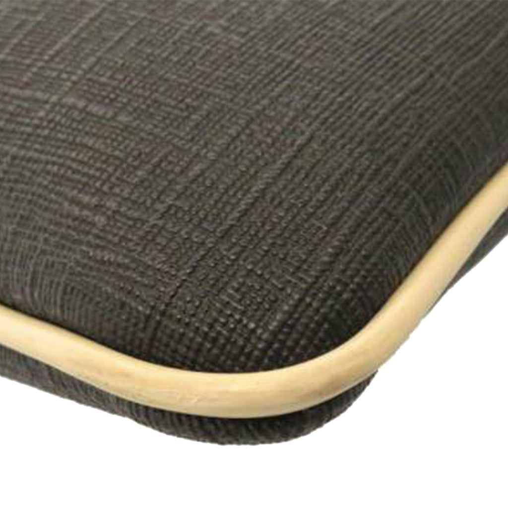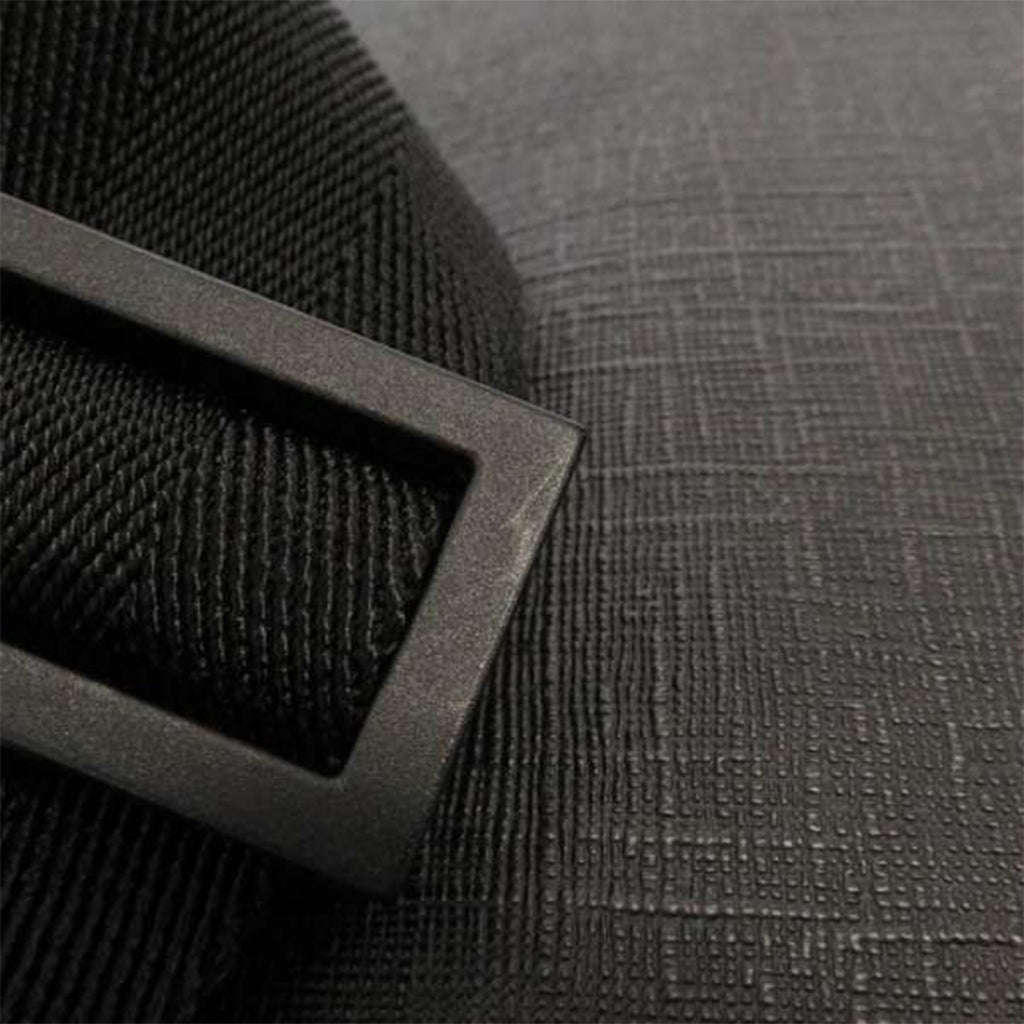 This crossbody bag features a PVC body with leather trim, an exterior front slip pocket, a flat adjustable strap, a top zip closure, and interior zip and slip pockets.