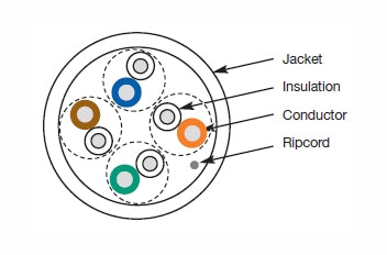 M57546B Cat5e 4 pair UTP blue plenum ethernet cable - Product Specification