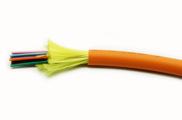 Mohawk M9B048 Advancelite 62.5/125 micron multimode,OM1, 12 fiber round distribution, UL TYPE OFNP/cUL OFN FT6 plenum rated orange jacket. Mohawk's M9B048 complies with TIA/EIA-568-B.3 & provides 300 meter (@850nm) & 550 meter (@1300nm) link for gigabit ethernet. Spool.