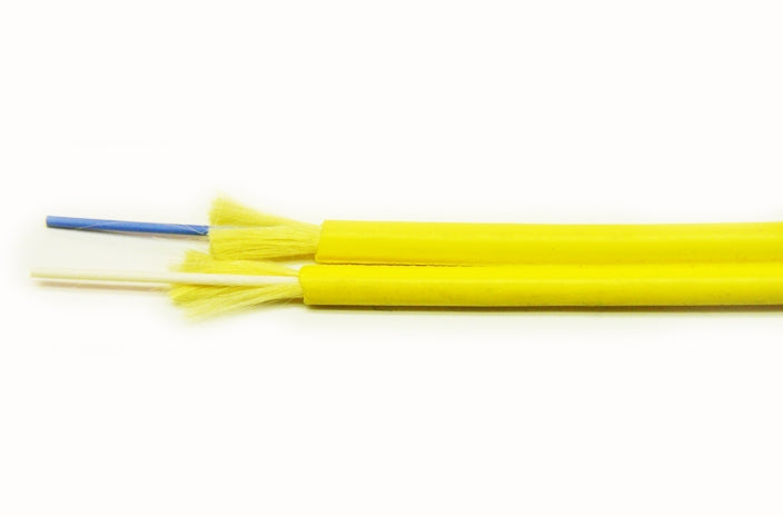 Mohawk M9W002 Advancelite 8/125um OS2 singlemode duplex zip cord, UL TYPE OFNR/cUL OFN FT4 riser rated  2.9mm yellow jacket. Mohawk's M9W002 complies with TIA/EIA-568-B.3 & provides 10,000 meters (@1310nm) link for 10 gigabit ethernet. Spool.