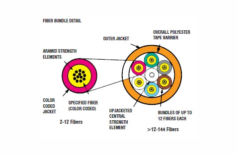 Mohawk M9W048 Advancelite 8/125 micron singlemode 12 fiber round distribution, UL TYPE OFNP/cUL OFN FT6 plenum rated yellow jacket. Mohawk's M9W048 complies with TIA/EIA-568-B.3 & PROVIDES 10,000 METERS (@1550nm) link for 10 gigabit ethernet. Spool.