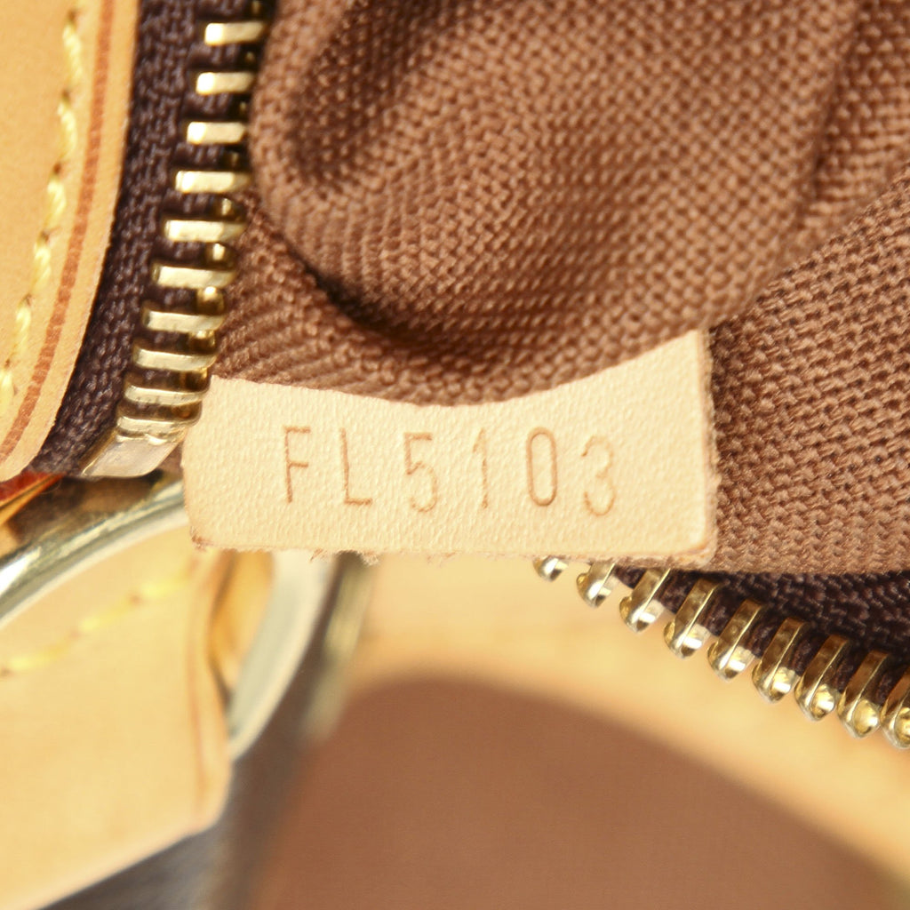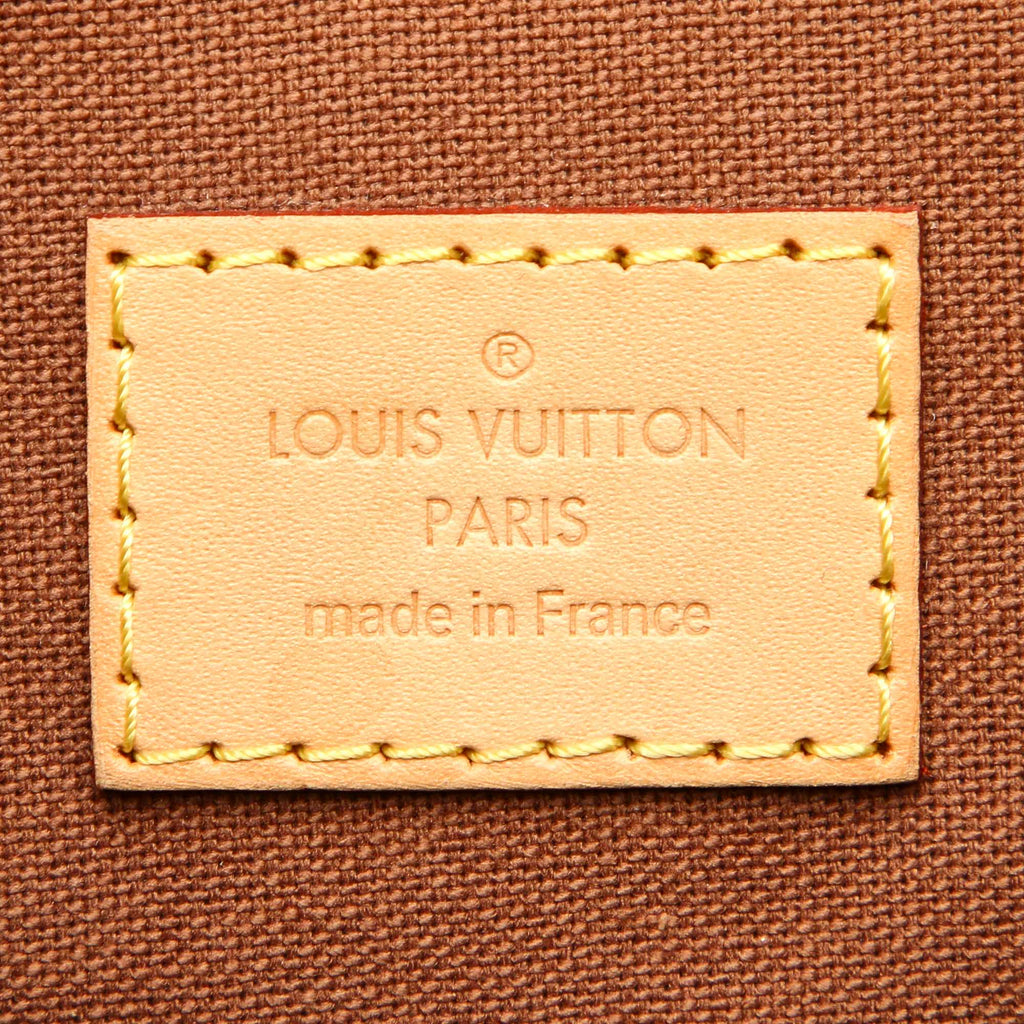The Sac a Dos Bosphore backpack features a monogram canvas body with vachetta leather trim, flat back straps, a flat top handle, a top flap with a buckle closure, a drawstring closure, and exterior zip pockets.